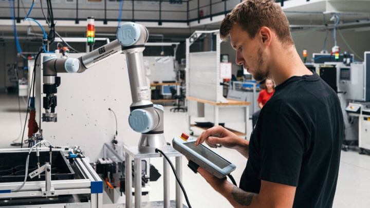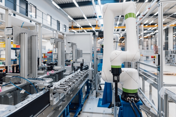 The integrated robots handle the loading and unloading of parts to and of the assembly line and can be quickly adapted to different requirements.